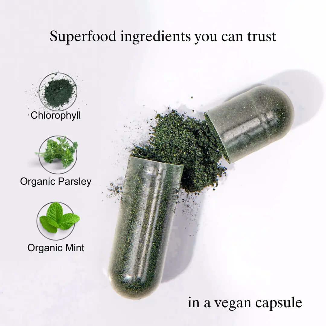 Nature’s Best Ingredients: Packed with parsley for cleansing, peppermint for freshness, and chlorophyllin for detox, this blend supports your health and works wonders.